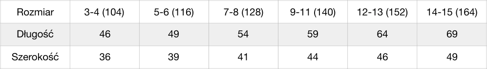 | Rozmiary | 104, 116, 128, 140, 152, 164 |